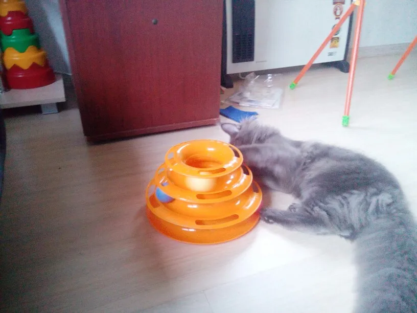 Shipping to Eagle took more than two months. tracking ended in Moscow, and half term delivery parcel lay there in the sorting. toy is delivered unassembled because of what at first thought sent something) put together is not difficult, balls are pulled out with force, tight. the cat is very happy! play together and turns)